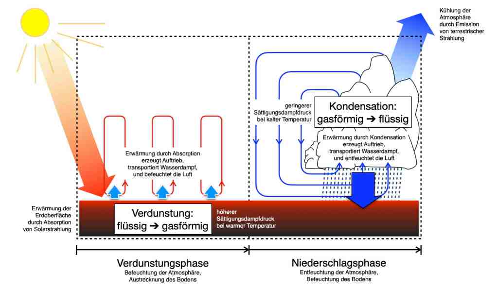 Wir können deshalb die Dynamik des Wasserkreislaufs aufteilen in zwei Phasen (siehe Abbildung):