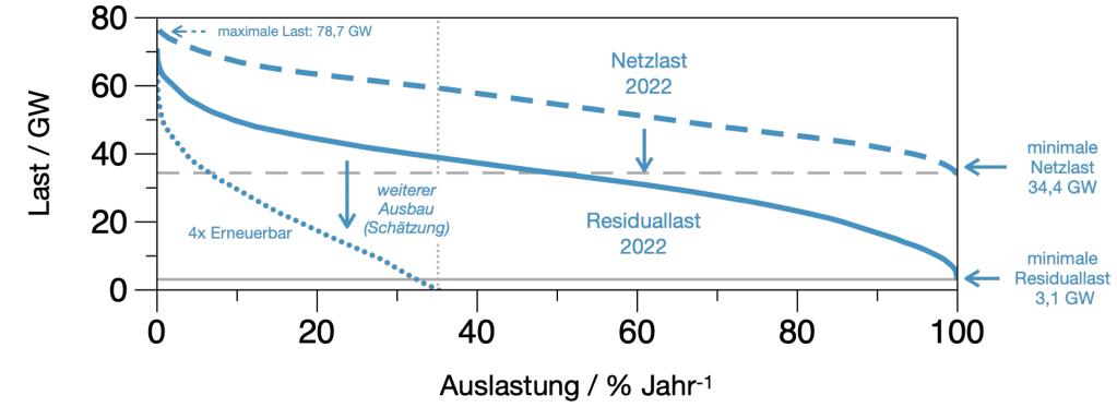 Der weitere Ausbau erneuerbarer Energien wird die Residuallast noch weiter reduzieren. Der Bedarf an Grundlastkraftwerken wird also in absehbarer Zeit verschwinden.