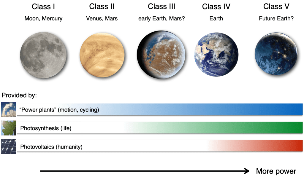 The solution is obvious. Stop burning fossil fuels and generate energy yourself using photovoltaics to yield the energy needs of human societies and maintain, and even potentially enhance, their disequilibrium states. This is where the third process comes into play, which can perform work from sunlight: photovoltaics. It is already much more efficient than photosynthesis, allowing the Earth to generate more power from incident solar radiation. Human technology would then be a manifestation of the continuation of processes that can increase the work done by planetary systems (Frank et al., 2017).